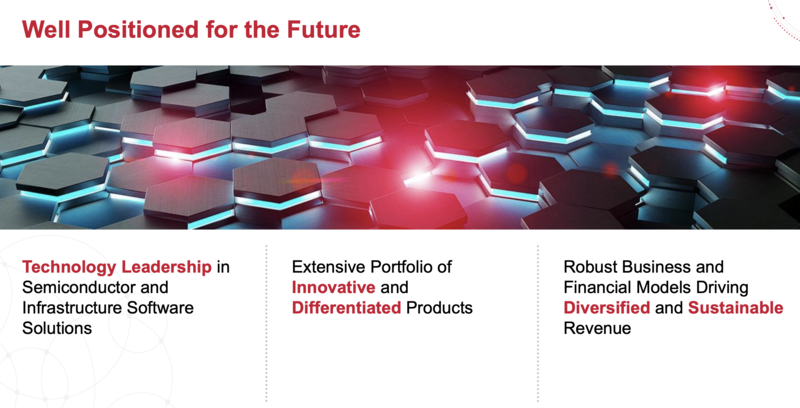 소프트웨어/하드웨어에만 한 쪽에만 쏠려있다면 경기침체, 고객사 결정 등 외부 요인에 너무 큰 영향을 받을 수 있지만 현재 브로드컴은 양쪽이 적절히 분배되어 있는 이상적인 모습입니다.